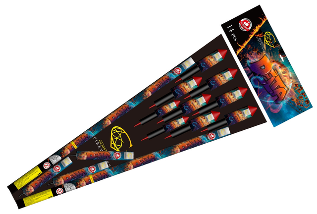 14 fireworks assortment rocket pack contains 9 amazing loud rockets, 3 candles and 2 eight shots cannons. This selection pack will surely become a party favourite.